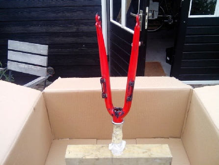 Schuren, ontroesten en in de anti roest primer. Eerst de voorvork; daarna de achterbrug.