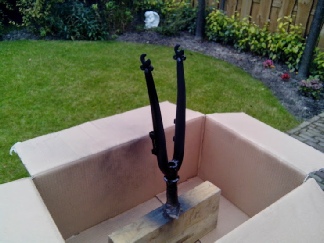 Ook al spuit je drie lagen met de eind kleur, het spul droogt zo snel, dat dezelfde dag er al weer wat gemonteerd kan worden.