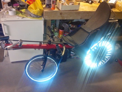 Vandaag was de bestelling binnen en kon ik afbouwen. Jammer genoeg had ik een verkeerd tandwiel besteld, maar gelukkig had ik nog een vrij nieuw liggen. Ik heb drie nieuwe kettingen door de buizen geregen en op lengte gemaakt. Al hangende deden alle versnellingen het.