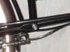 Echt veel zie je er niet van, maar neem het maar van mij aan: ze zitten er echt! DE PERSLAGERS! Voorzicht recht in het lagerhuis tikken met een hamer en een blokje hout. Daarna de bout er door en vastdraaien zodat de achterbrug zonder spelling kan bewegen. De moer met nylon gebruiken om de eerste moer te borgen. Eigelijk zou hier tussen ook nog de spaak moeten om de tyleenbuis op te hangen. Maar omdat ik voor het M5 spul hen gekozen, komt dat bij mij anders uit.