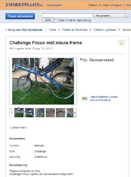 Op 12 augustus verscheen een advertentie van een Challenge Focus op Marktplaats waar ‘wat aandacht voor nodig was’.