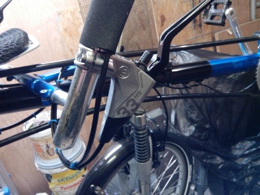 Op donderdag 19 september heb ik smidddags de voororem af gemaakt en savonds de achterrem gemonteert. Nu kan je fietsen en remmern