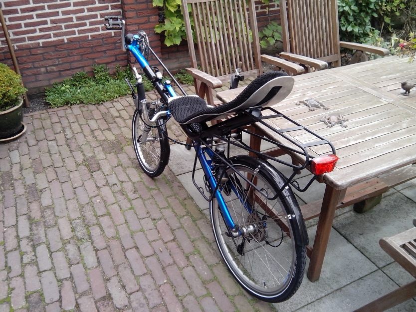 Op vrijdag 20 september heb ik de fiets aan de tand gevoeld en een proef rondje gereden: alles doet het, werkt en functioneert naar behoren. Nu nog de belettering en een spiegeltje en de fiets is helemaal af!