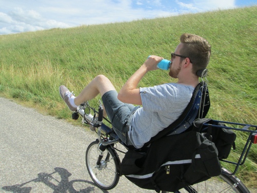 De fiets heeft een ander voorwiel met naafdynamo ‘gekregen en een laad-systeem voor de telefoon. Er hangen Elan tassen aan en zo is de fiets klaar voor de reis van Newastle en Edinburg. Dirk moet nog wel oefenen, maar onderstuur viel hem 110% mee :-)