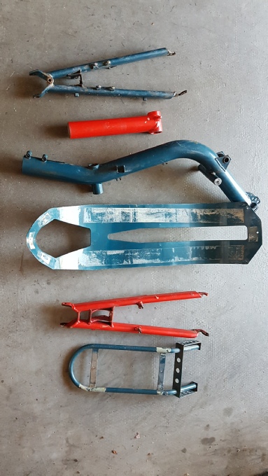 De fiets is weer helemaal uit elkaar gegaan en, samen met wat onder delen naar de poedercoater gebracht
